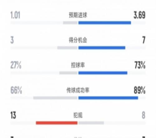 皇家社会vs巴萨数据:射门7比25、进球机会3比7、控球率27%比73%