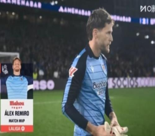 做出8次扑救!雷米罗当选皇家社会vs巴萨全场最佳球员