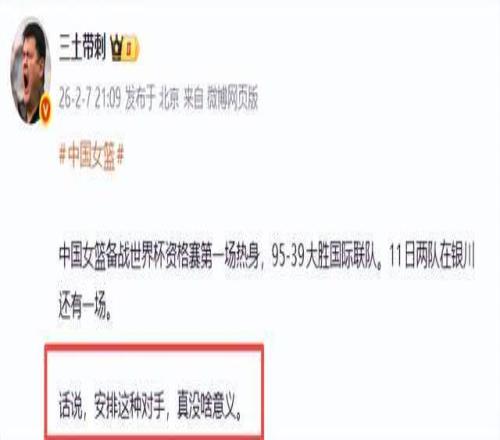 这场一边倒的胜利,引来媒体人“三土带刺”尖锐批评:“安排这种对手,真没啥意义。”——一语道破核心矛盾:热身赛的真正价值,是检验短板、磨合体系、模拟强敌,而非在弱旅身上刷数据、找自信。