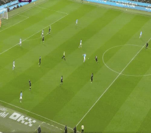 第24分钟,曼城如法炮制,罗德里将球分到右路,努内斯果断传中,哈兰德头球没能顶到,皮球砸在博格的头上造成乌龙助攻,塞梅尼奥抢射破门。